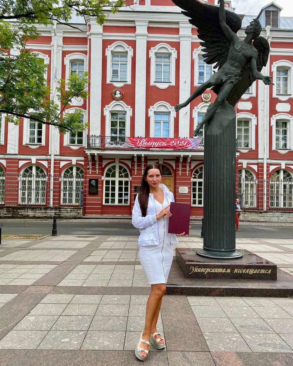 Время так быстро летит! Делюсь с вами фото 2021 года. Года, когда я закончила бакалавриат. Перед главным зданием тогда ещё стоял памятник Универсанту, теперь — графу С. С. Уварову. Всё течёт, всё меняется)