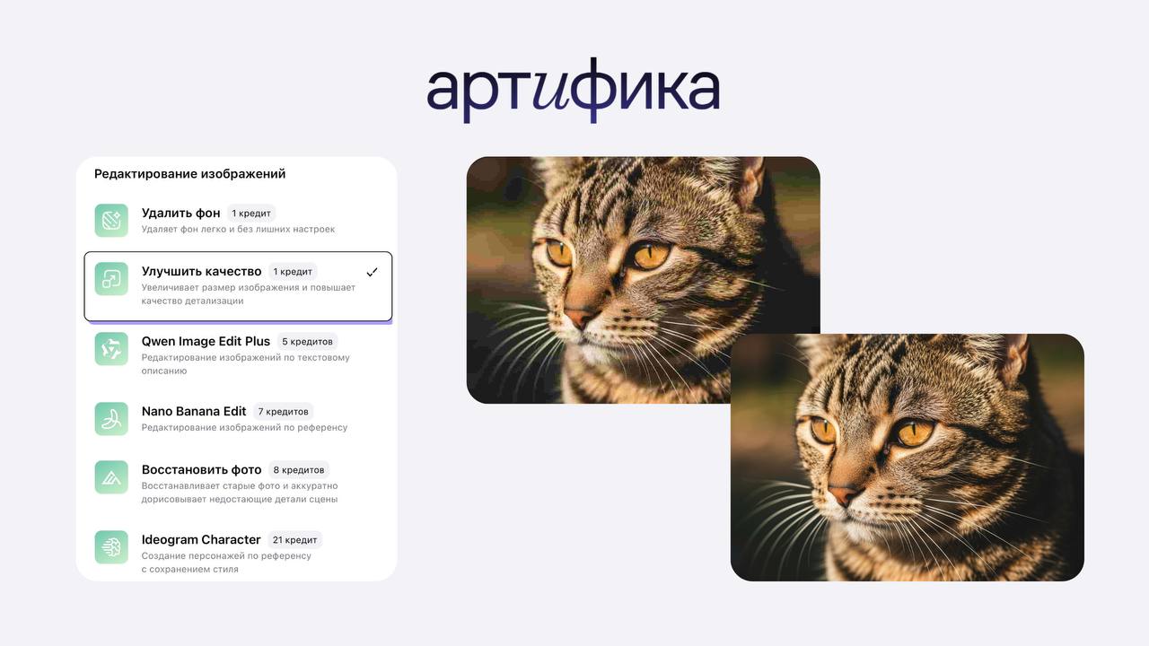Артифка может моментально повысить качество фотографий в 2–4 раза — это отличный способ быстро улучшить изображения для соцсетей, презентаций или рекламы.
