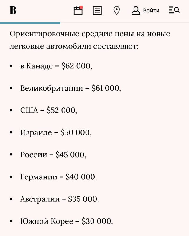 Новые машины в России оказались среди самых дорогих. Средняя цена сейчас около 45 тысяч долларов, это примерно 3,5 млн рублей. С 2022 года ценники выросли на 46%. В Китае и Японии средняя цена около 22,5 тысячи долларов, примерно 1,7 млн рублей, почти в два раза ниже. В тексте это связывают с утильсбором.