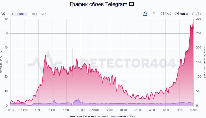 Масштабные перебои в работе Telegram идут уже вторые сутки. Пользователи из разных регионов России жалуются на сбои: мессенджер зависает, файлы не загружаются. За последние сутки набралось почти 9 тысяч жалоб на работу сервиса.