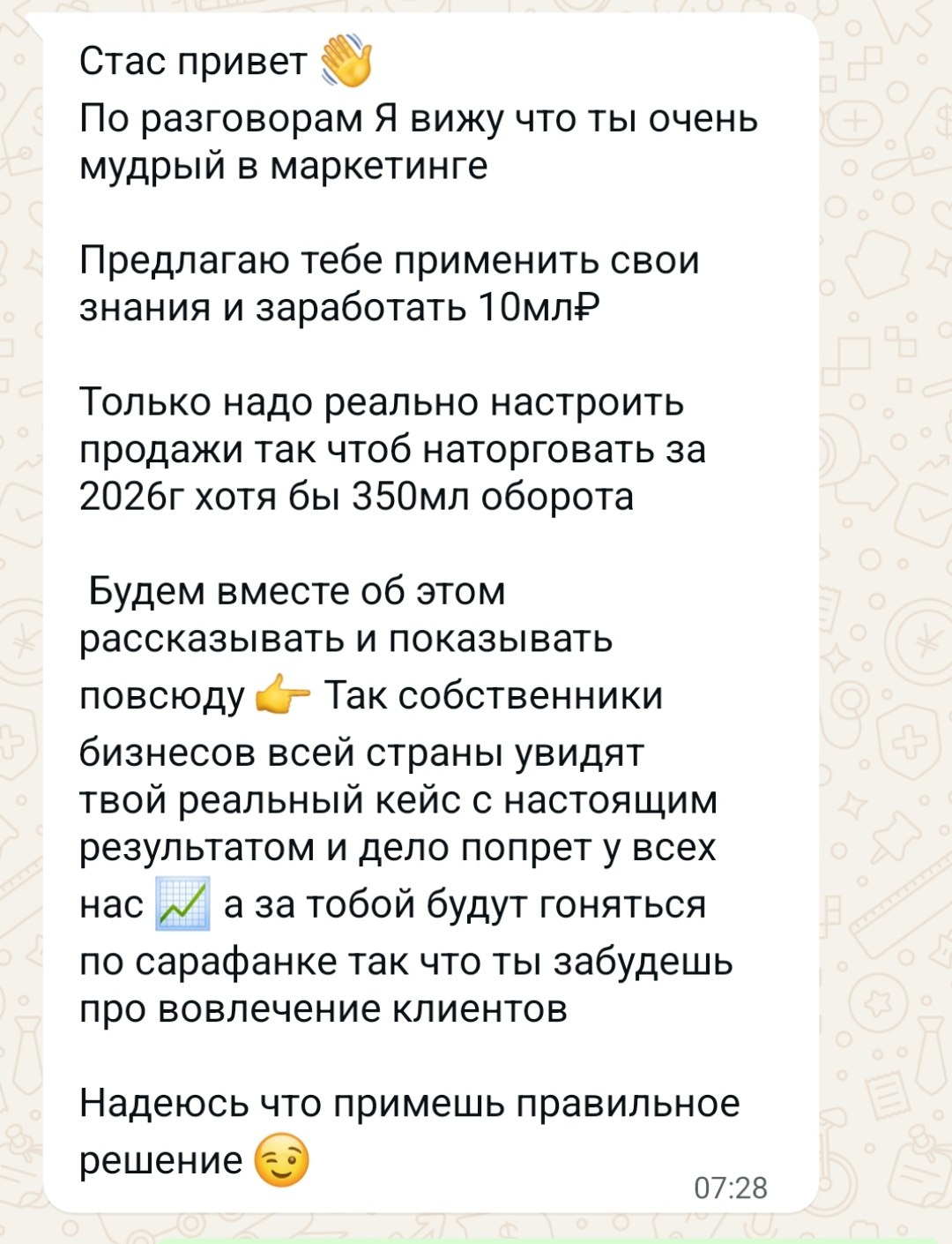 4. Попытка взять на понт словами "Надеюсь что примешь правильное решение 😉".