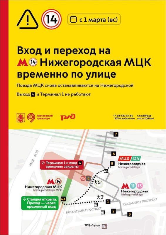 О.п. «Нижегородская» МЦК открылась по временной схеме. Посадка и высадка в сторону о.п. «Угрешская» идут из всех вагонов. А в сторону о.п. «Андроновка» открываются все двери, кроме первой двери в первом вагоне.