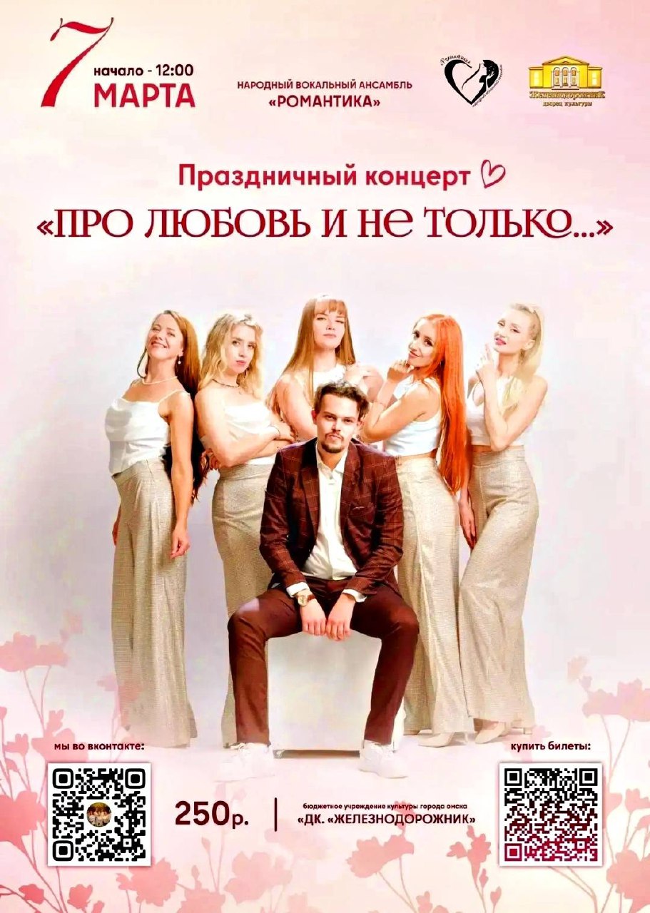 Комитет ТОС "Светлый" информирует жителей микрорайона о том, что 07.03.2026г. в 12:00 в БУК г. Омска ДК «Железнодорожник» состоится праздничный концерт «Про любовь и не только….».