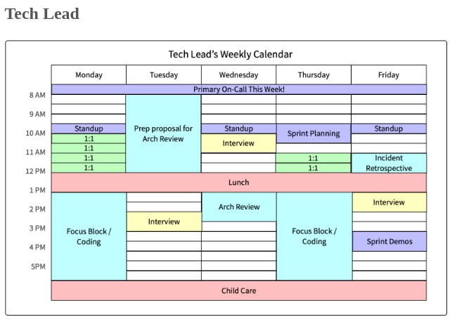 Если вы на пути к Staff или уже там, то автор также приводит график недели каждого из типов — можно "примерить" на свой 😎