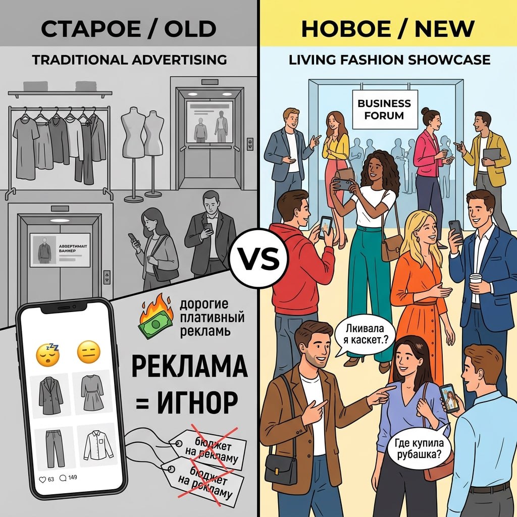 Это не реклама. Это социальный fashion-перформанс внутри живой предпринимательской среды.