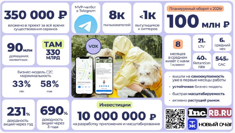 Поглядываю иногда на проекты, которые появляются на brainbox и увидел там проект VOX - ребята делают сервис по передержке и выгулу собак. Как раз искал нечто подобное. На удивление - у них нет приложения. 8 тысяч активных пользователей используют MVP в виде телеграм бота. Платежи иду, люди используют, сервис прибыльный, а приложения все еще нет.