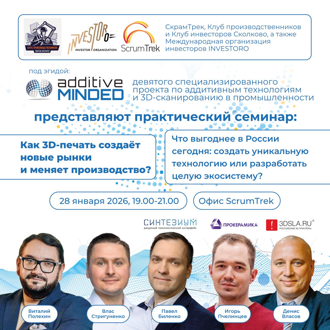 В рамках конференции аддитивных технологий Additive Minded (Москва, 27-30 января) мы проведем практический семинар, где разберем как технологии 3D-печати перестают быть инженерным экспериментом и становятся фундаментом новых бизнес-моделей, производственных цепочек и инвестиционных стратегий.