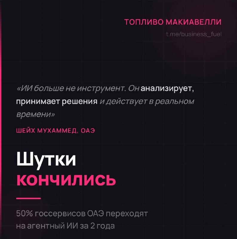 ОАЭ объявили: через 2 года 50% государственных сервисов переходят на агентный ИИ. Не «рассматриваем». Не «пилотируем». Дедлайн - 24 месяца.