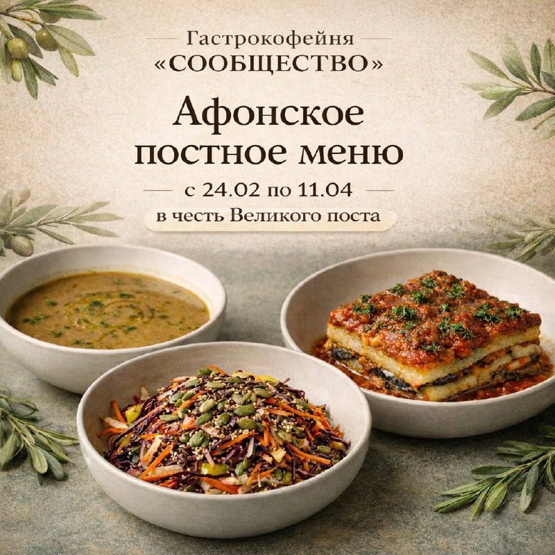 В связи с чем, с 24.02 по 11.04 в гастрокофейне «Сообщество» мы подаем постное меню.
