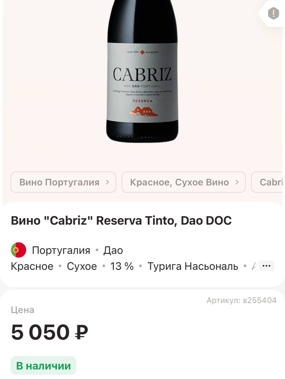"Cabriz" Reserva Tinto — бленд трех сортов: Альфрокейро, Арагонеш и Турига Насьональ.