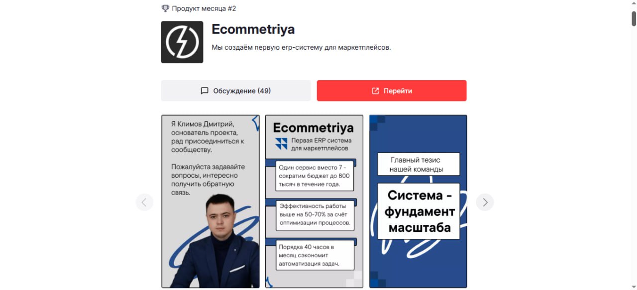 Чтобы проголосовать за нас, или возможно какой-то ещё дополнительный проект (много действительно классных уже размещены), нужно сделать несколько шагов: 1. Зарегистрируйтесь на официальном сайте https://productradar.ru/ 2. Добавьте фотографию в профиль. 2.1. Важным дополнением будет, если укажите свой телеграм. 3. Перейти на страницу нашего проекта productradar.ru/product/ecommetriya 4. Пролистайте страницу вниз и нажмите на кнопку "Поддержать". 5. Не обязательно, но приятным бонусом будет ваш комментарий.