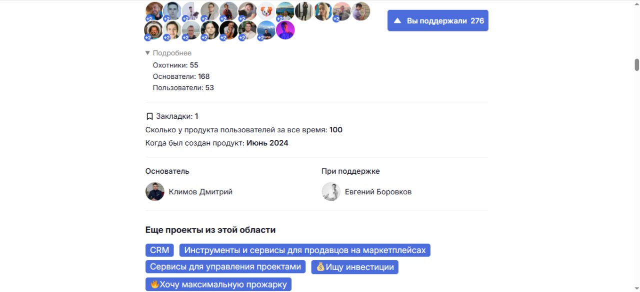 Охотники: 55 Основатели: 168 Пользователи: 53