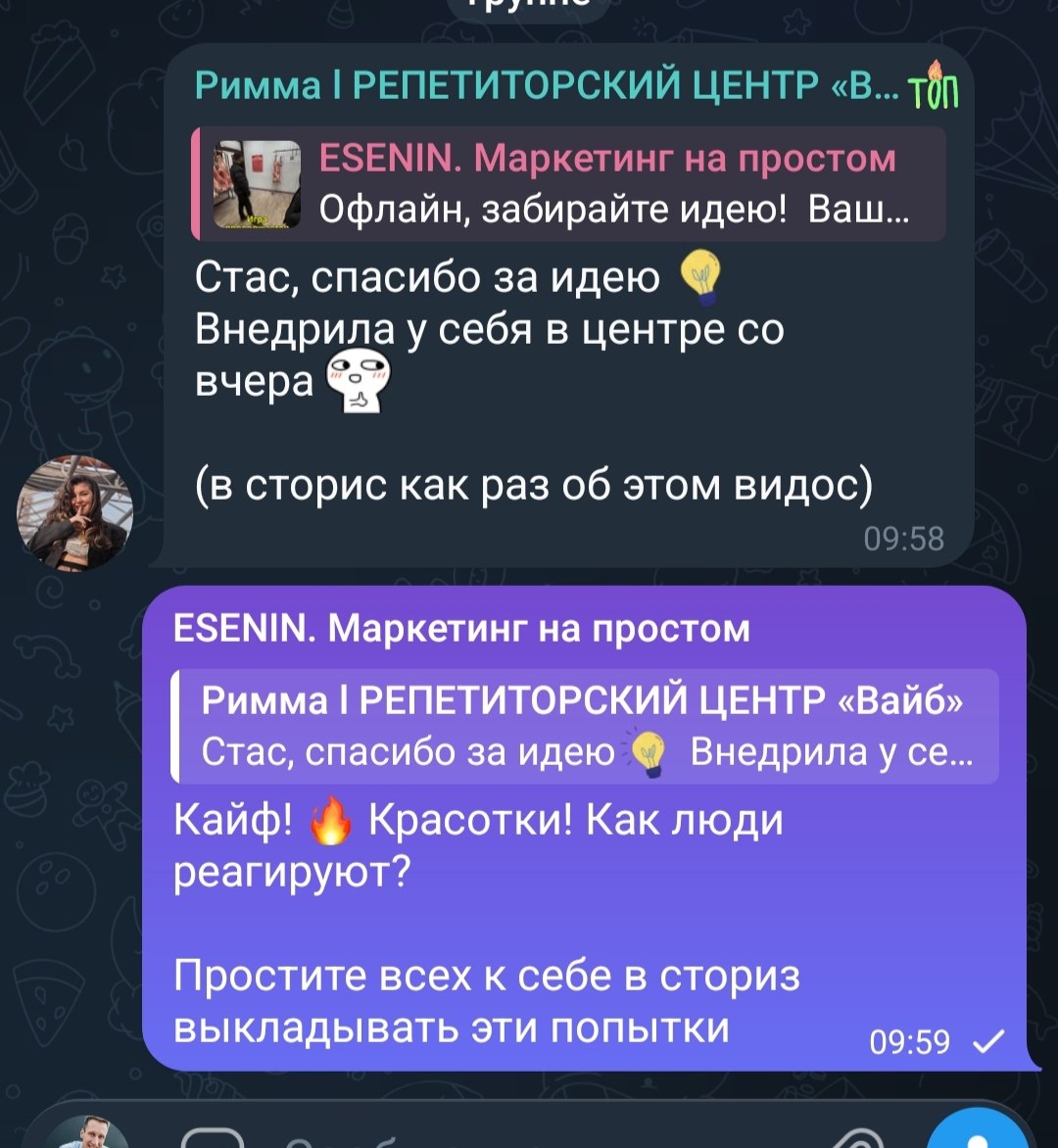 Маркетинг должен быть простым, но не примитивным. Разжигаю сарафан и помогаю сэкономить на рекламе от 700 000 🍷Лучшее: https://t.me/esenin_mind/916 Делаю маректинг без лишних затрат - Приходи на консультацию @EseninSA. #маркетинг #marketing