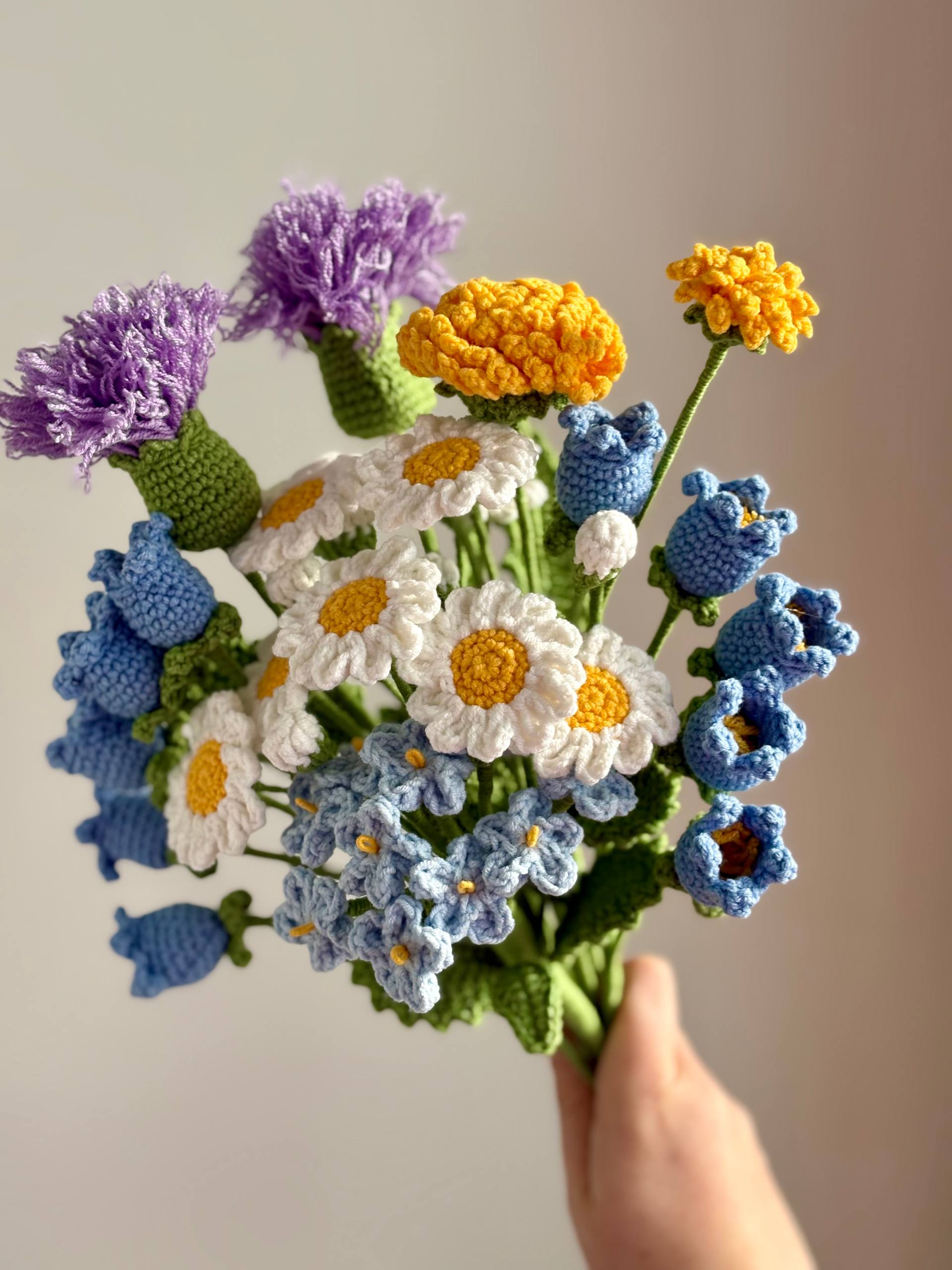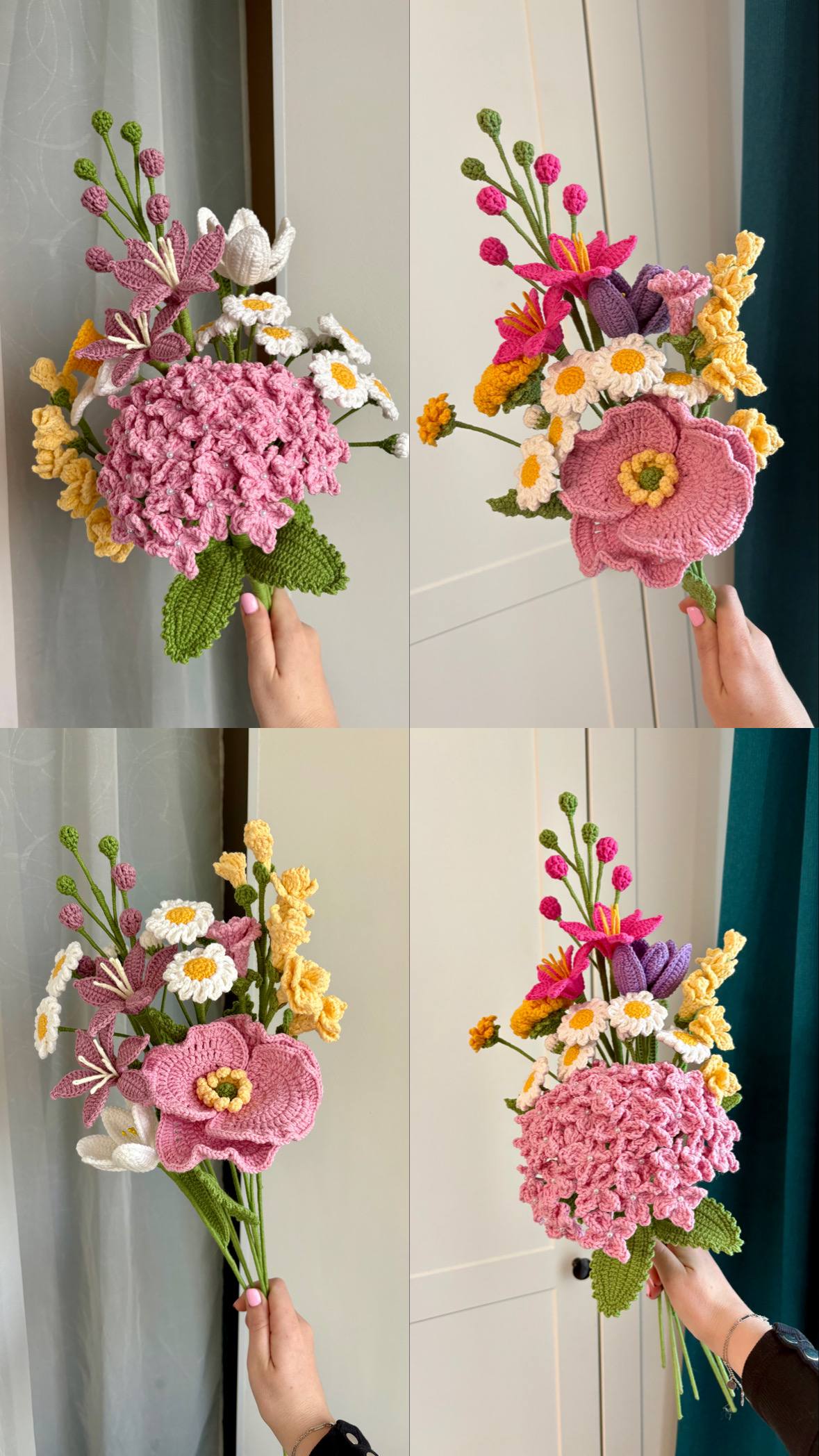 Так уже лета хочется 🥰 У меня во всю уже идет посадка рассады. В этом году будет ударна доза цветов в саду 😅 Домашний парник заполнен на 55%, а еще только середина марта 😥 Желательно весне продолжать в том же духе и быстрее поторопить тепло ⭐️ А пока довольствуюсь великолепным полевым букетом из вязаных цветов 🤍