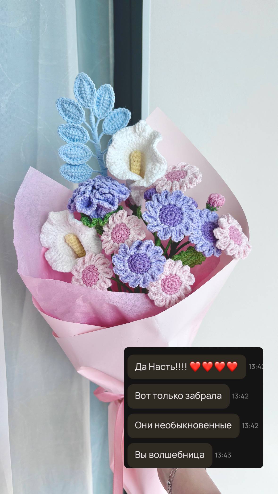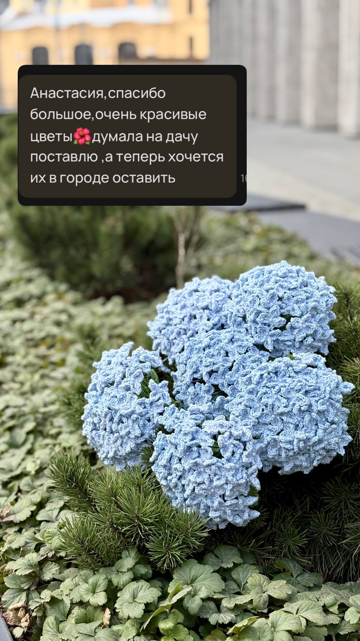Это не просто красиво, это трубец как красиво ❤️ Из садовых цветов гортензия - это мой любимый 😍 К сожалению живой срезанный цветок стоит плохо, а выращивать его на участке - квест тот еще 😅 Зато вязаный - это тебе не проблем, не хлопот и радует каждое мгновение 🥹 Пока мой фаворит из всех вязаных мною цветов 🌸