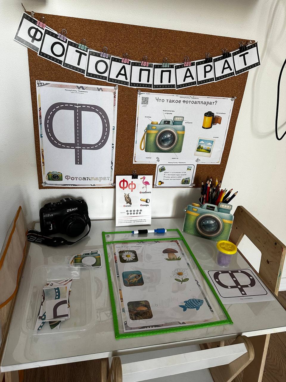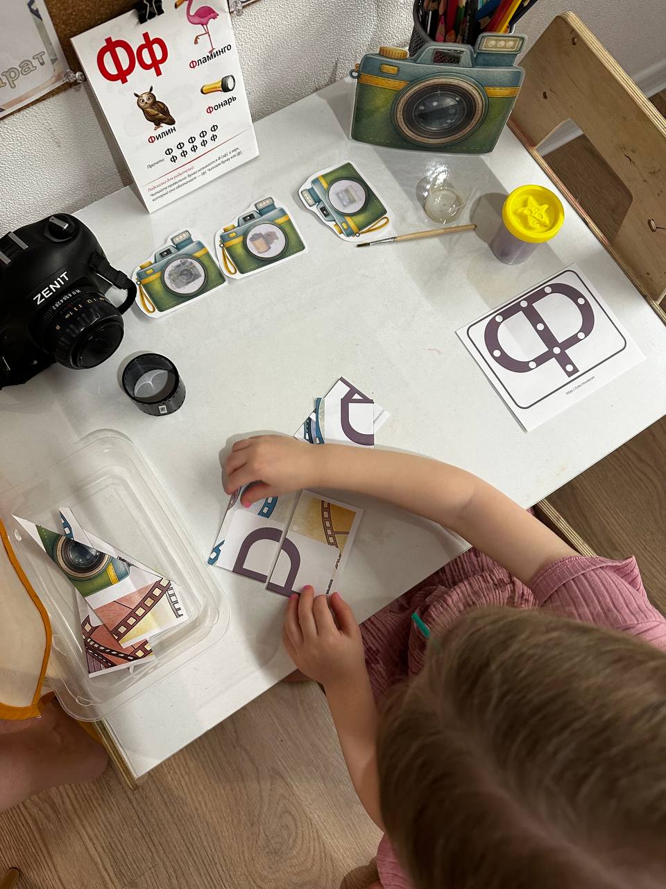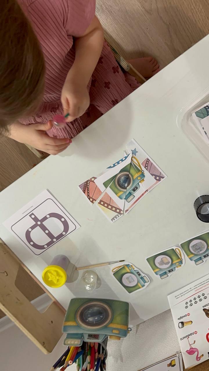 Что в программе: • изучили строение фотоаппарата • благодаря гирлянде вспомнили другие буквы • соединили фото с рисунком • с помощью масла определили, что в объективе фотоаппарата • сложили пазлы • посмотрели, какие еще слова начинаются на эту букву • зафиналили пластилиновыми заплатками