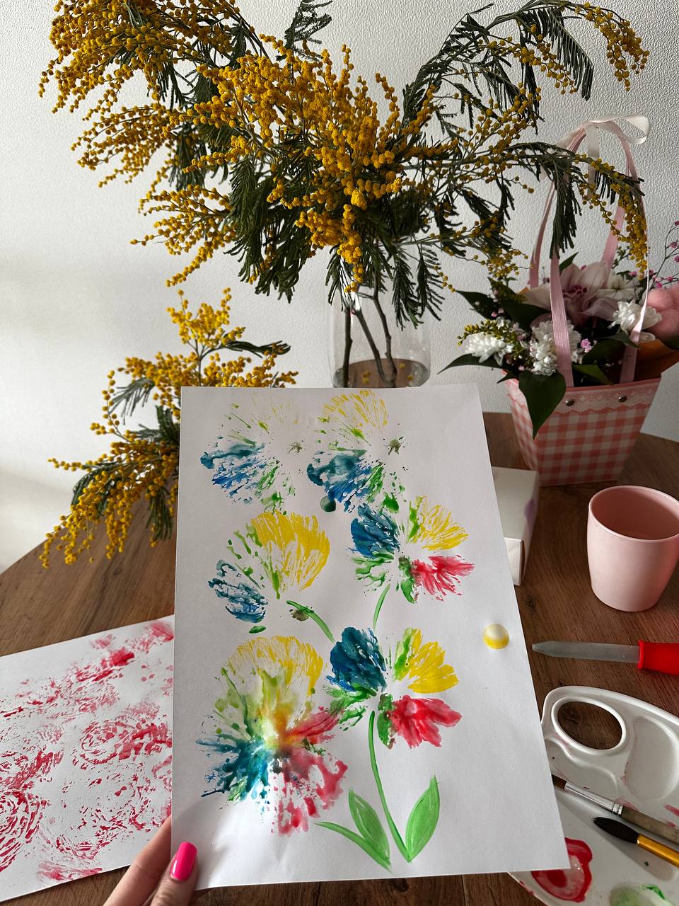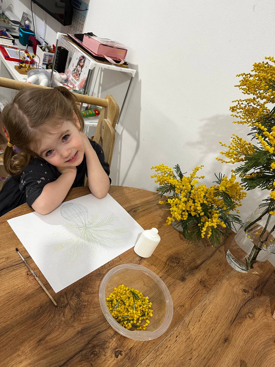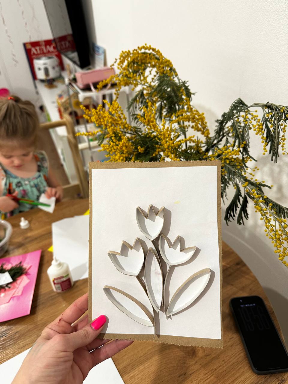 • на последнем фото открытка от анастасии, которую она сама придумала и реализовала. Предыстория: папа принес из магазина картон и цветную бумагу, настя всё это забрала у него, попросила клей и ножницы, потом сама нашла веточки мимозы и сидела около часа всё это мастерила 😋 Потом оказалось, что это мне открытка 🥹