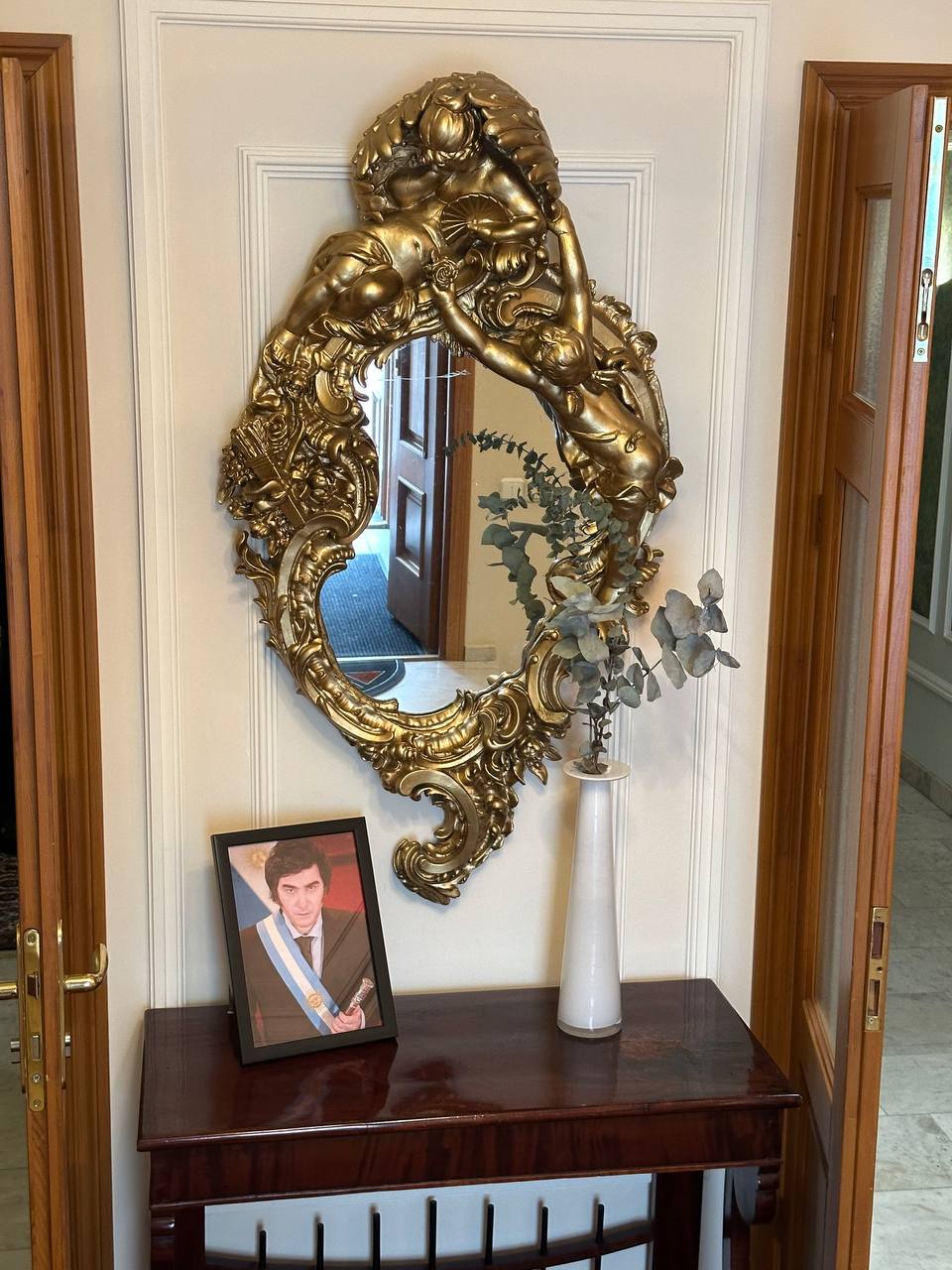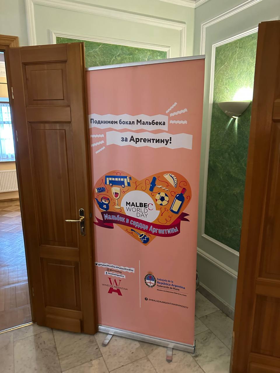 Посол Аргентины выступил с приветственной речью и пожелал россиянам не только пить побольше Мальбека (в честь этого и был сбор), но и приезжать к ним в гости. Но вот зеркало над портретом аргентинского президента, кажется, намекает исключительно на родовой туризм, но аргентинский паспорт - тяжелая нога с кучей потенциальных проблем, так что лучше всё взвесить.