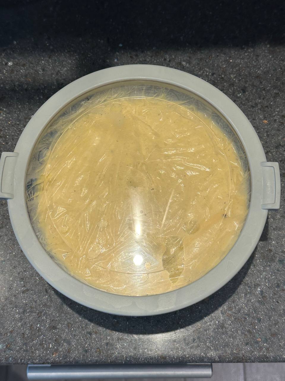 3. Накрыть пленкой в контакт, дать настояться в холодильнике 24-48 часов. Чем больше, тем лучше, сутки - это минимум, тесто стоит в холодильнике до 72 часов.