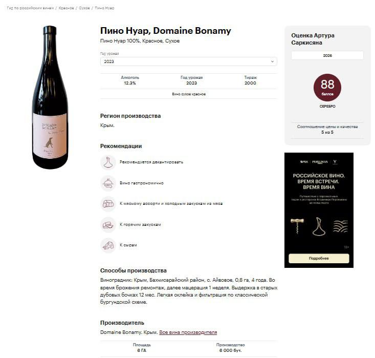 Больше всего порадовало, что спустя год после выхода на рынок, начинает проклёвываться узнаваемость некоторых малышей, лично я очень рад за Domaine Bonamy. С Аллой Бонами мы познакомились случайно, у меня была встреча с одним крымским виноделом, а она попросилась с ним за компанию "послушать", в итоге с тем виноделом мы так и не начали работу, а с Аллой вот работаем 🍷 Кажется, год назад мы были первыми, кто решился поставить вино семейства Бонами к себе на полку, спустя год торгуем уже не только мы, а вина есть даже в некоторых знаковых ресторанах 🔥