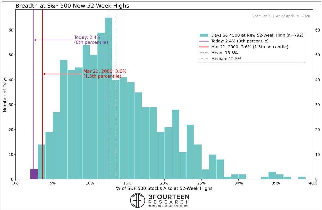 Индекс прошёл первые десять торговых дней апреля так мощно, что текущий старт месяца оказался вторым по силе с 1950 года. Рынок растёт и делает это с темпом, который исторически встречался крайне редко.