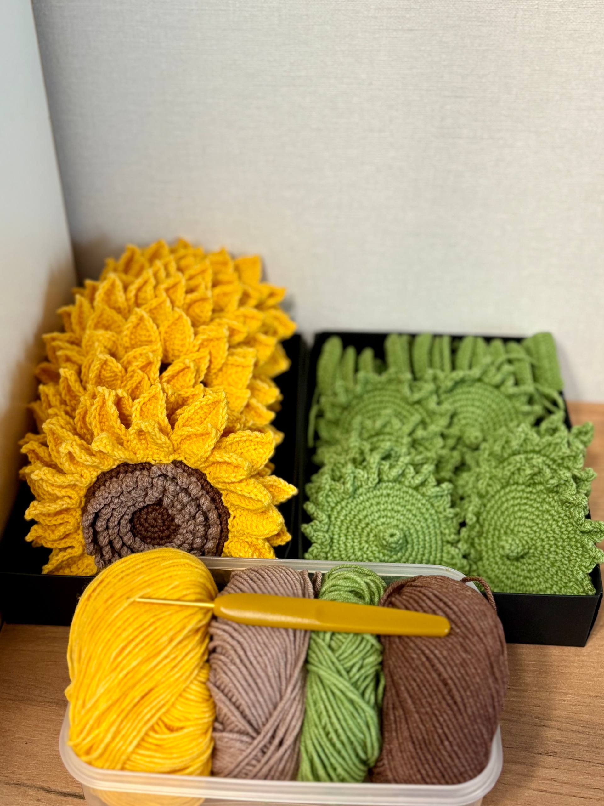 Пока с дочкой на больничном решила навязать на наличие подсолнухи 🌻 Уже собиралась их крутить, как обнаружила, что закончился холофайбер😅 И вот он уже пришел на пункт выдачи, но на улицу выходить что-то не очень хочу🥹 Зимнюю одежду и обувь я давненько убрала 🥲 Как и резину на машине поменяла тоже давно - молодец одним словом 😂 Те, кто сегодня на улицу вышел, полет нормальный?😂