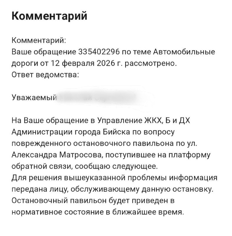Остановочный павильон на улице Матросова напротив дома 23 отремонтировали. Помогла заявка на портале «Решаем вместе». Стены заменили на профлист, крышу из поликарбоната пока не меняли.