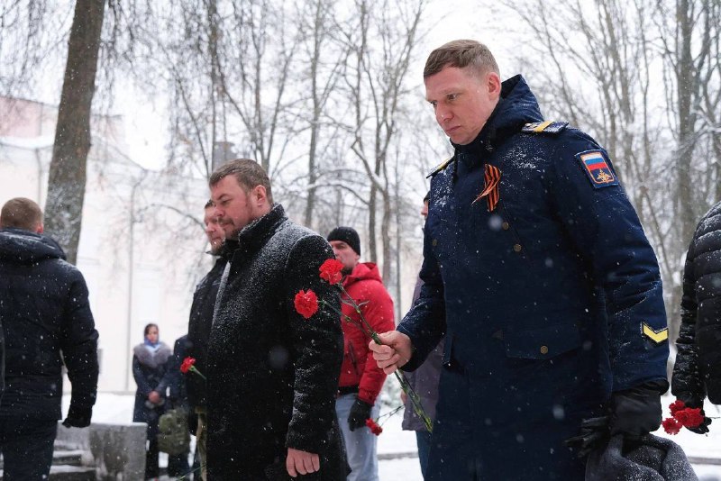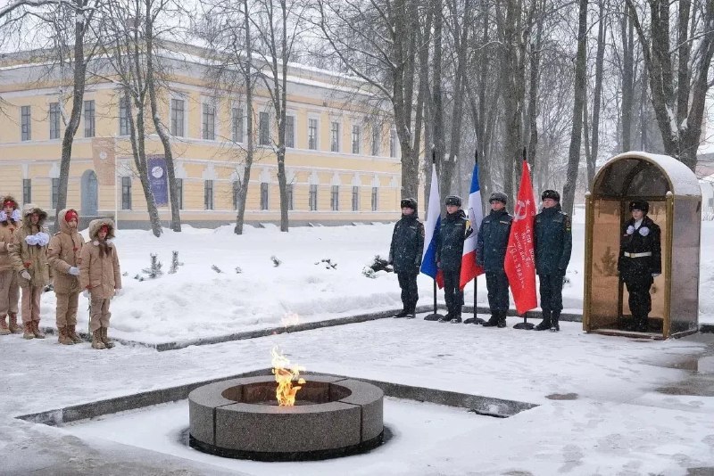 В этот день цветы к мемориалу «Вечный огонь славы» возложили ветераны СВО, участники программы «СВОи Герои 53» Дмитрий Кузьмичев и Андрей Павлов.