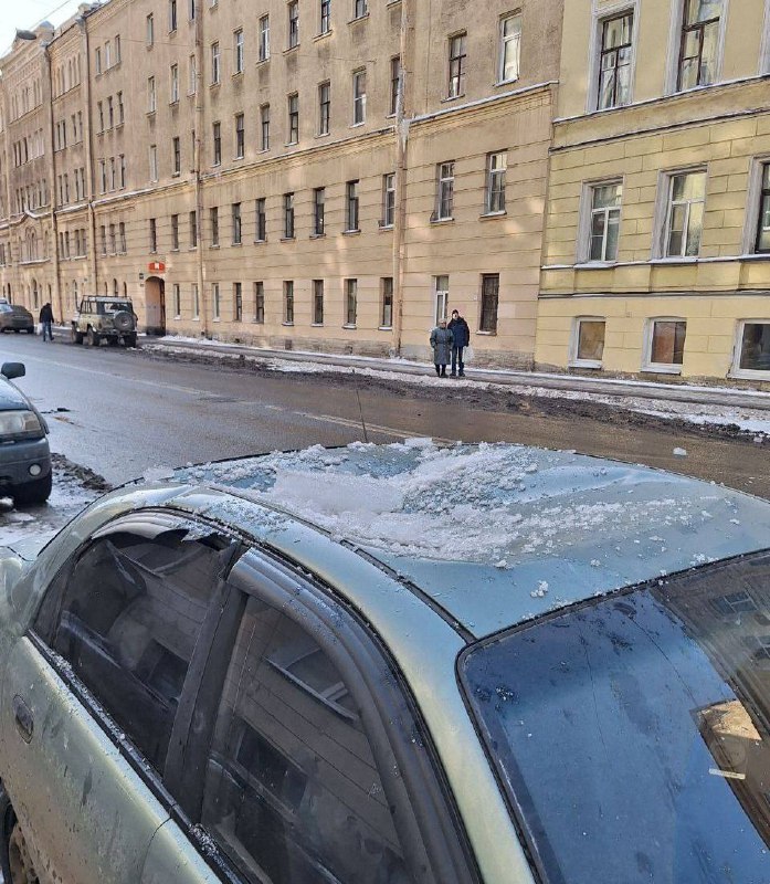 Оттепель в Петербурге обернулась ледяным обстрелом машин. В центре города снег и куски наледи сорвались с крыш и упали на несколько припаркованных автомобилей. Пострадали машины у дома 22 на Английском проспекте и у дома 29 на Загородном проспекте.