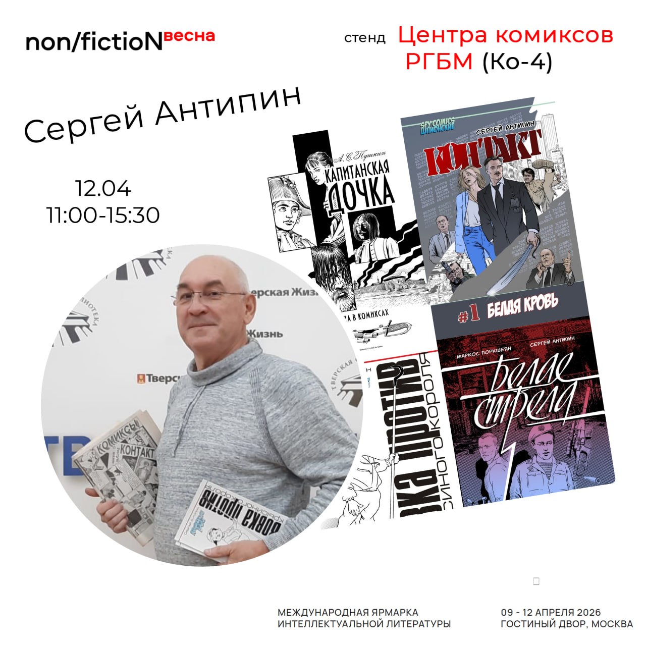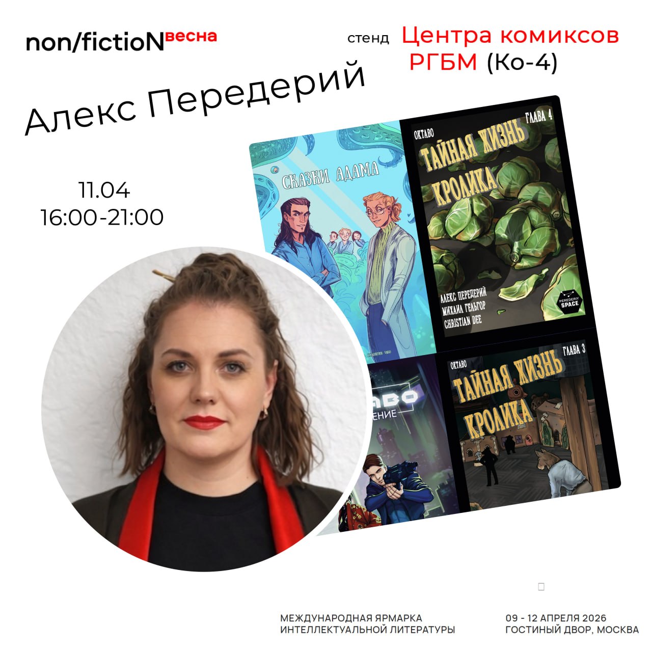 Ярмарка Nonfiction Весна 2026 уже через неделю! Как обычно, ждём вас на стенде в зоне "Комиксы" (Ко-4) с изданиями Центра и других комикс-клубов страны, да с крутыми комиксистами 👀