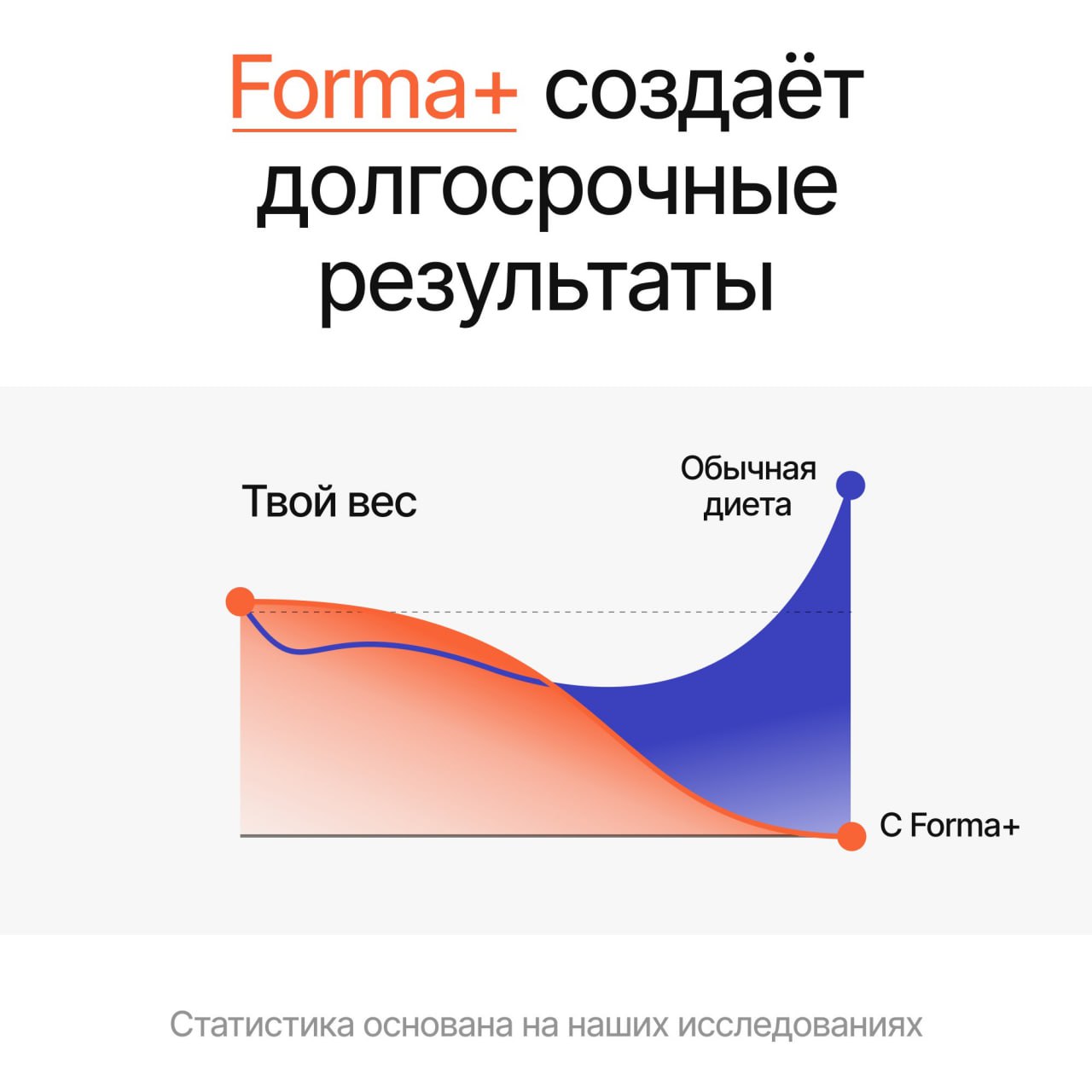 Как и любые приложения для контроля питания, Forma+ долгое время предлагал пользователю выбрать цель: похудение, набор мышечной массы или поддержание веса. Однако потом мы заметили, что 95%+ платящих пользователей выбирают Похудеть.