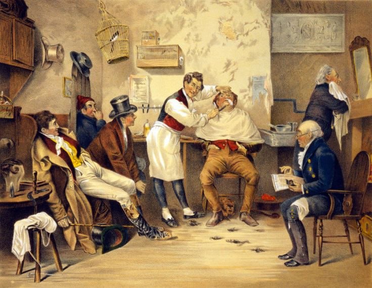 Логика простая: и там, и там нужны острые инструменты и уверенные руки. Нам, людям XXI века, это уже кажется диким — мы привыкли, что парикмахер и хирург живут в разных мирах и даже в разных ценовых категориях.