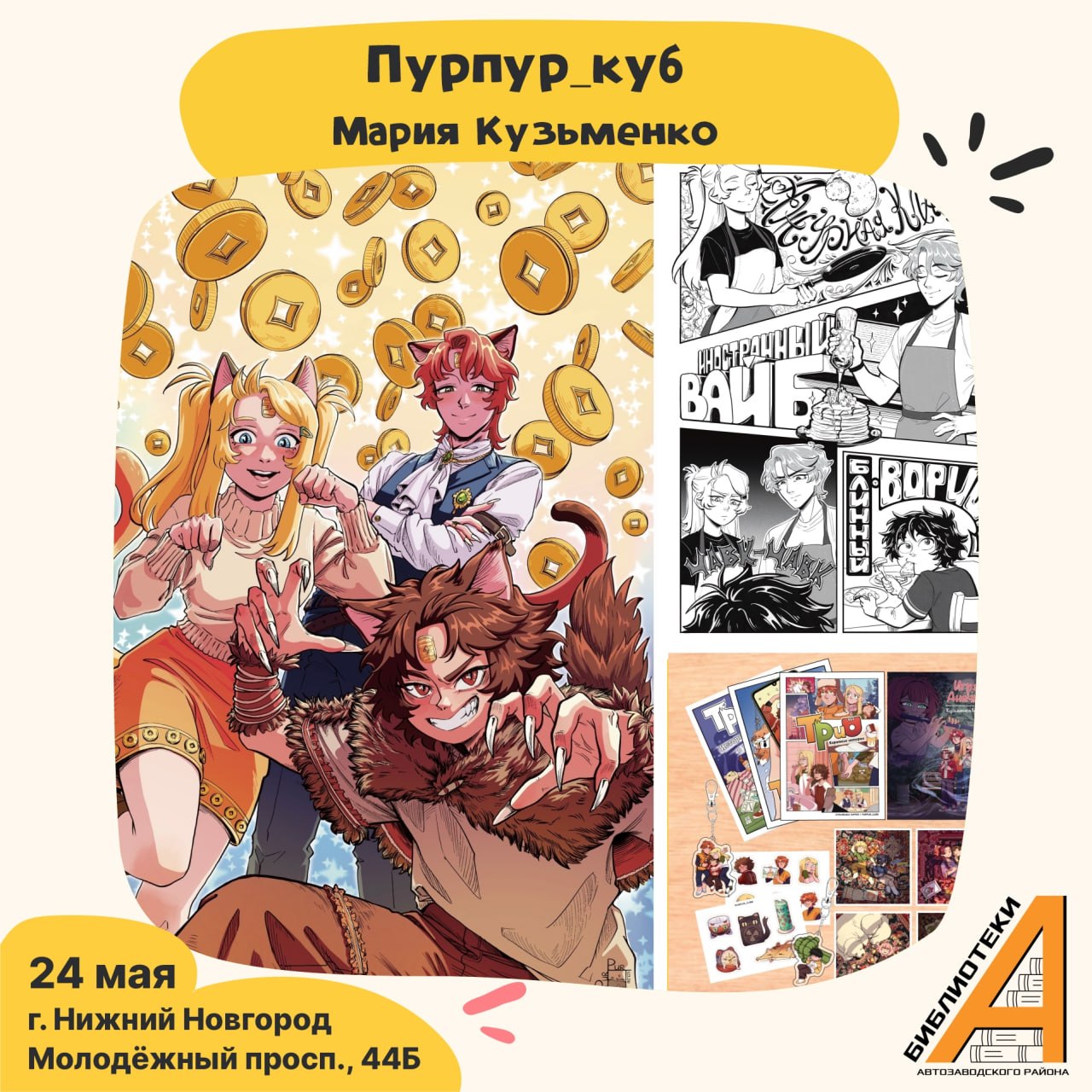 Привет, на связи Мария Кузьменко (Пурпур_куб) - художник-комиксист, иллюстратор. Рисовала комиксы для футбольного клуба «Spartak KID», работала с BUBBLE, а так же сотрудничаю с издательством WIZART comics на проекте «K-pop группа моей мечты».