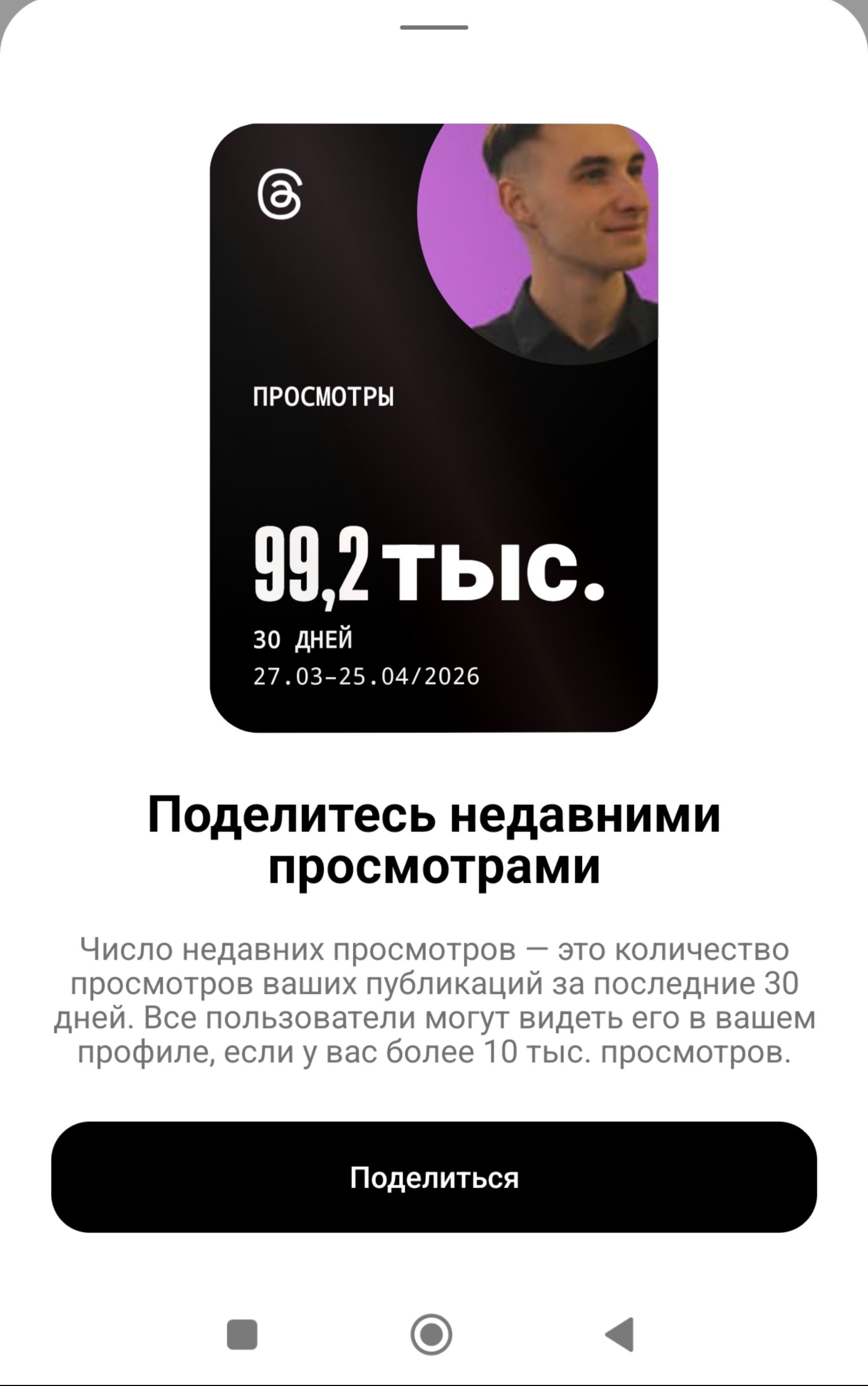 А в тредс все наоборот: 20% усилий дают 80% результата. Я трачу на эту соц сеть 2-3 минуты в день, и за последний месяц она дала мне 100к органических просмотров. Главное удобство в том, что на площадке лучше всего залетают именно короткие и ёмкие ветки.