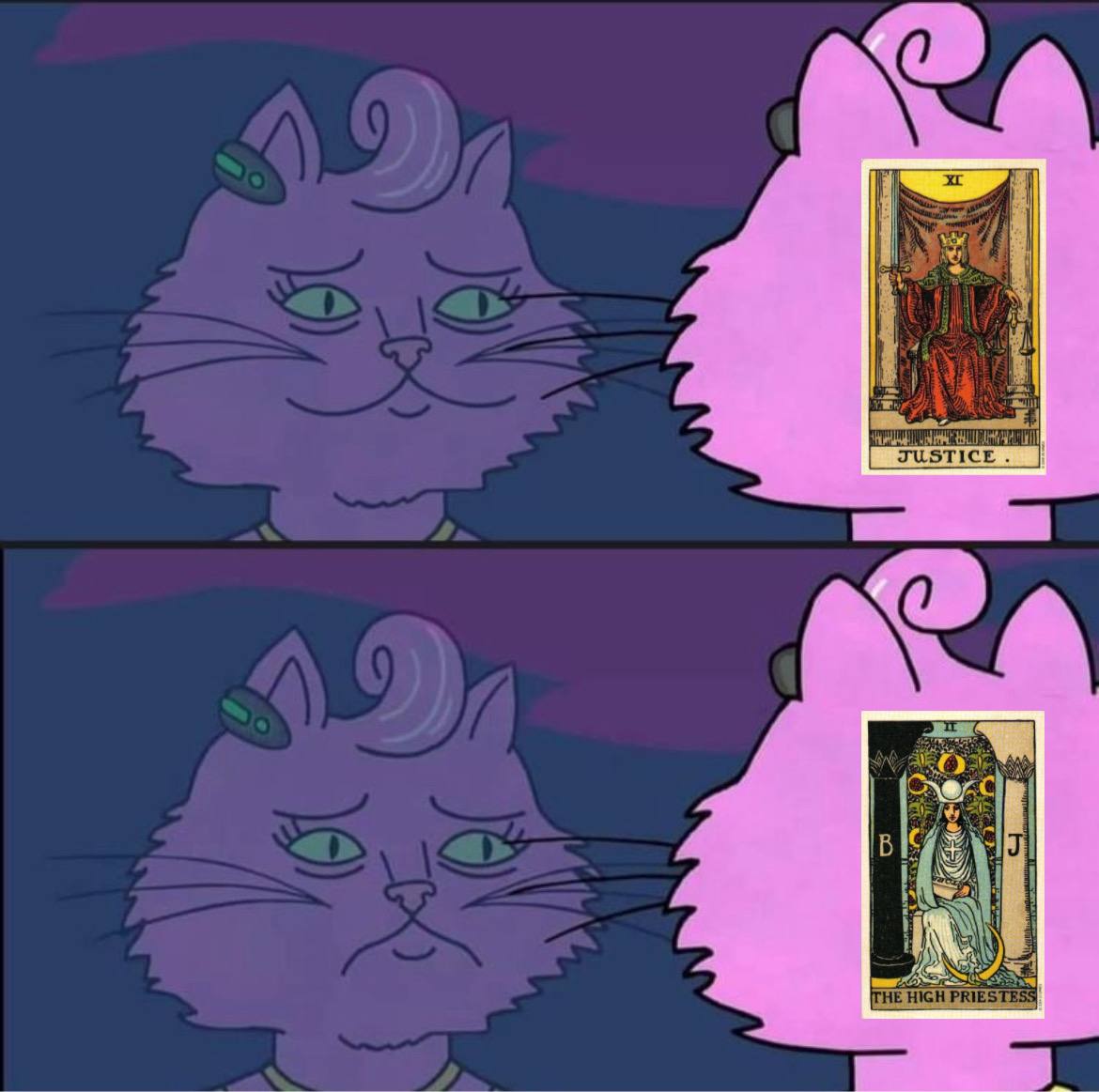 сегодня разберем мою любимую героиню сериала "конь боджек" - принцессу кэролин. я вижу ее в сочетании двух арканов: справедливость + жрица, и вот почему