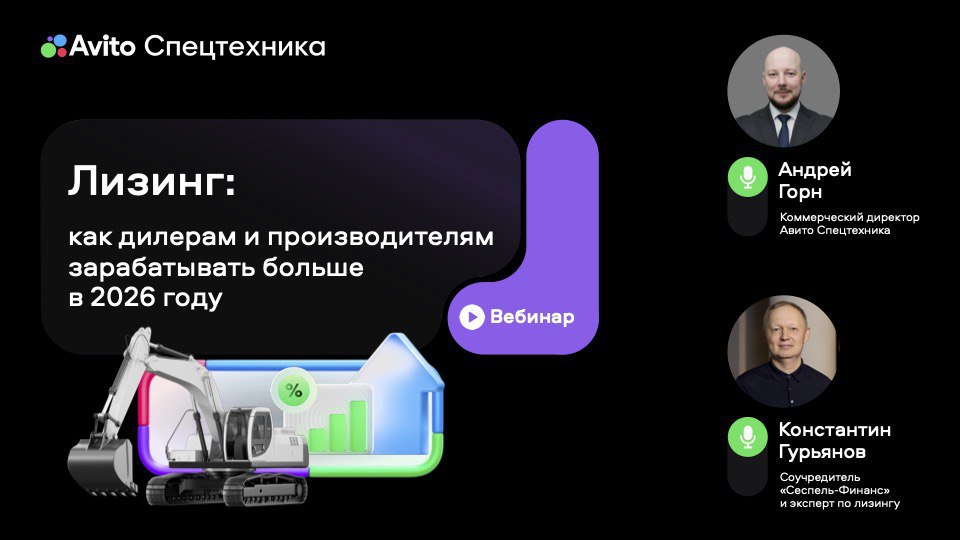 Если вы продаёте технику, работаете с дилерами или финансированием, то этот вебинар стоит посмотреть. На вебинаре обсудят самые актуальные темы: • Где дилеры теряют деньги в лизинговых сделках • Как увеличить маржу без роста цены • Кэптивный лизинг vs банки — что выгоднее в 2026 • Ошибки, которые съедают прибыль • Риски, о которых не говорят лизинговые компании • Что происходит со стоками изъятой техники