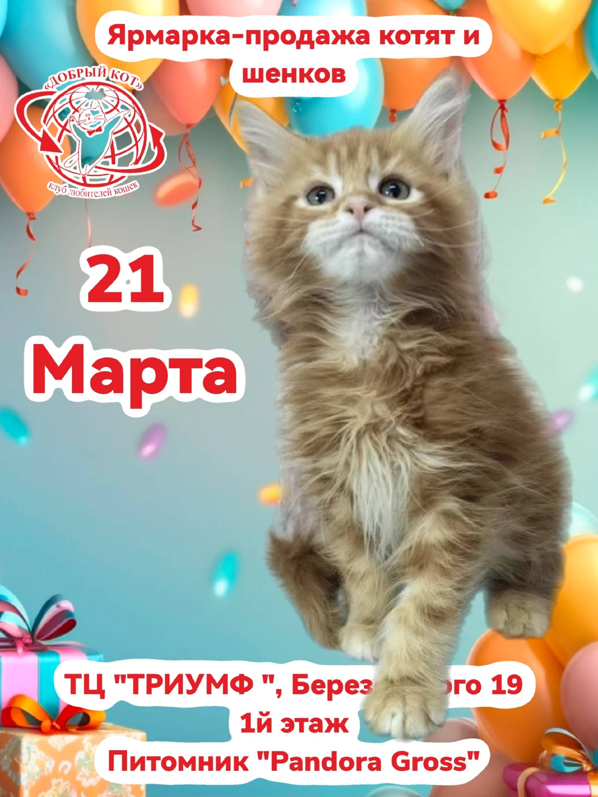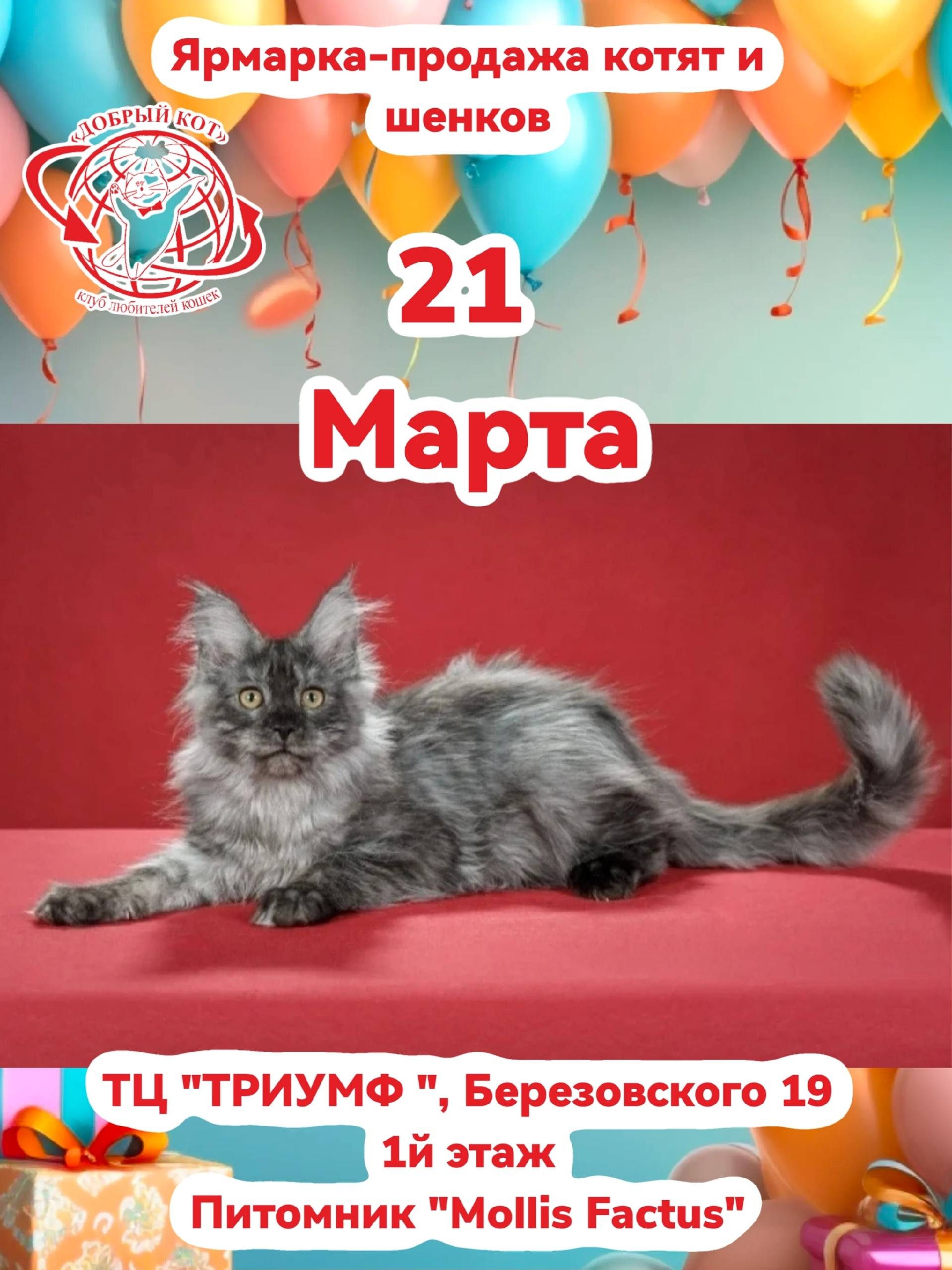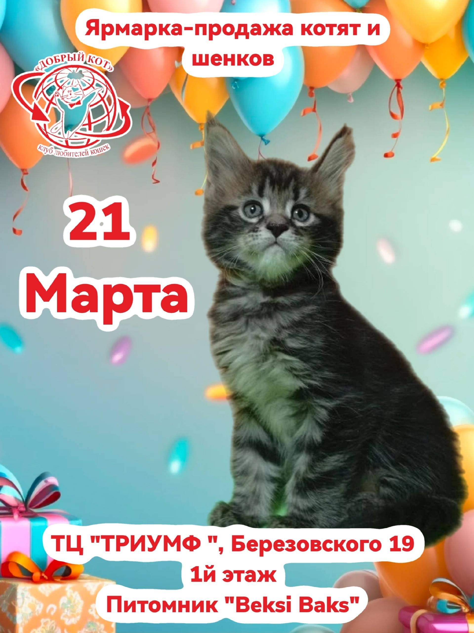 21 марта, куда пойти? Конечно же, мы ждём вас на ярмарке-продаже котят и щенков, где вы можете пообщаться и получить исчеппывающую информацию от заводчиков. Это хороший момент стать владельцем породного котёнка или щенка. Мы находимся в ТЦ Триумф, по адресу - Омск, ул Березовского 19, 1й этаж, рядом с Зоомаркетом 4 лапы. бэби-салон Вход свободный с 10 до 19-00.