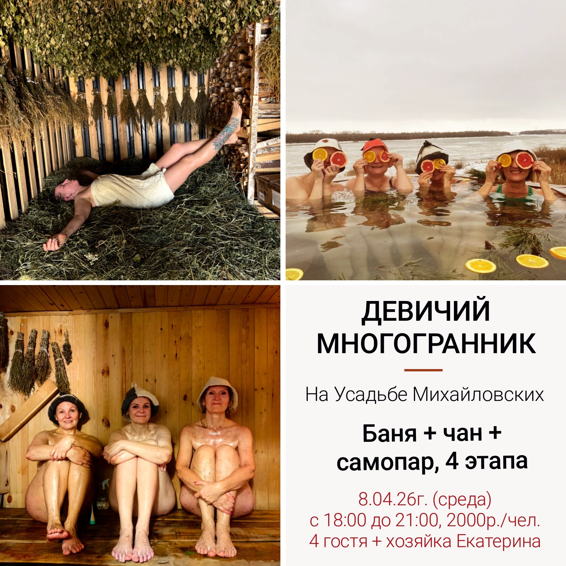 Что ждёт: ♨️ Настоящая баня на дровах — где с паром уходит всё лишнее, а на смену приходит лёгкость. 🛁 Чан с огромным окном в природу — ваш личный сеанс релакса с видом на величественный Иртыш. 🍵 Травяной чай и лимонная вода — для тонуса и разговоров по душам. 🌾 Уютный сеновал — идеальное место, чтобы помечтать. Дополнительно можно заказать: 💆♀️ профессиональный массаж, 30...