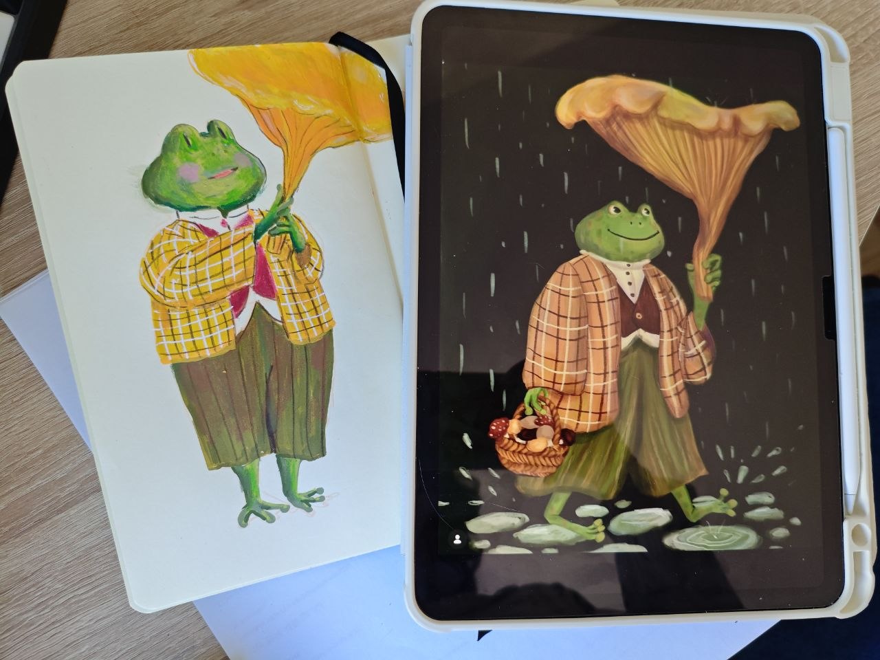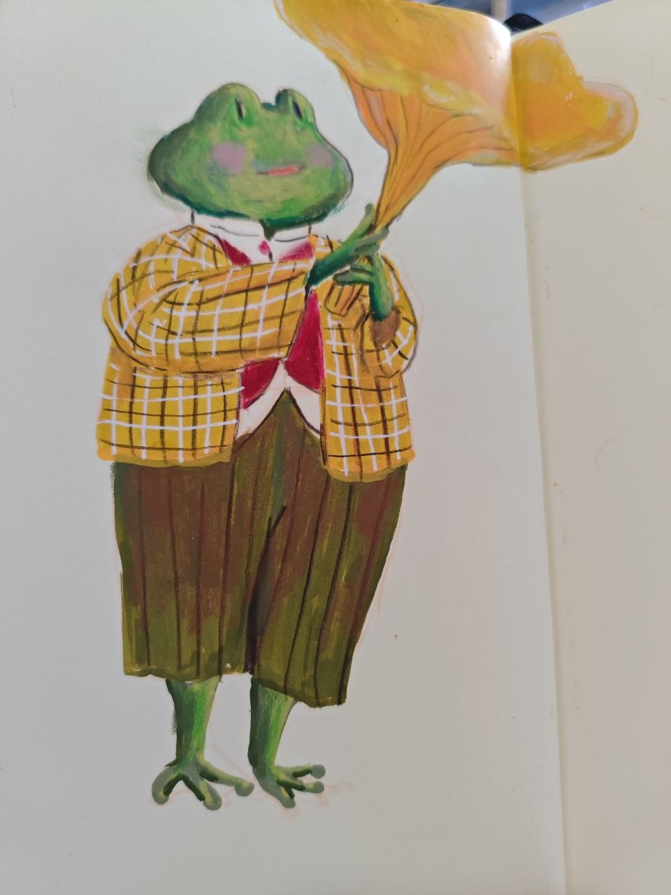 Хорошего начала недели желает Лягушка!) Пересматривала старые картинки и нашла откуда растут ноги и почему я часто рисовала лягушек с зонтиком-грибом) вот первоначальный персонаж, который когда-то родился в 2019 что ли в каком-то челлендже) Перерисовала его маркерами в скетчбук) #иллюстрации #наброски #скетчбук