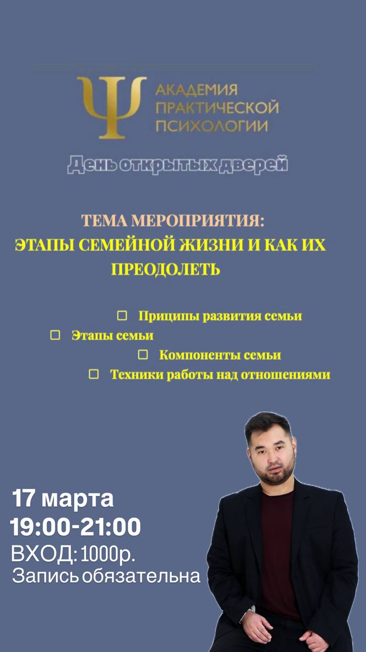 Мастер-класс о принципах развития семьи, её этапах, компонентах и техниках работы над отношениями. Проводится профессиональным психологом.