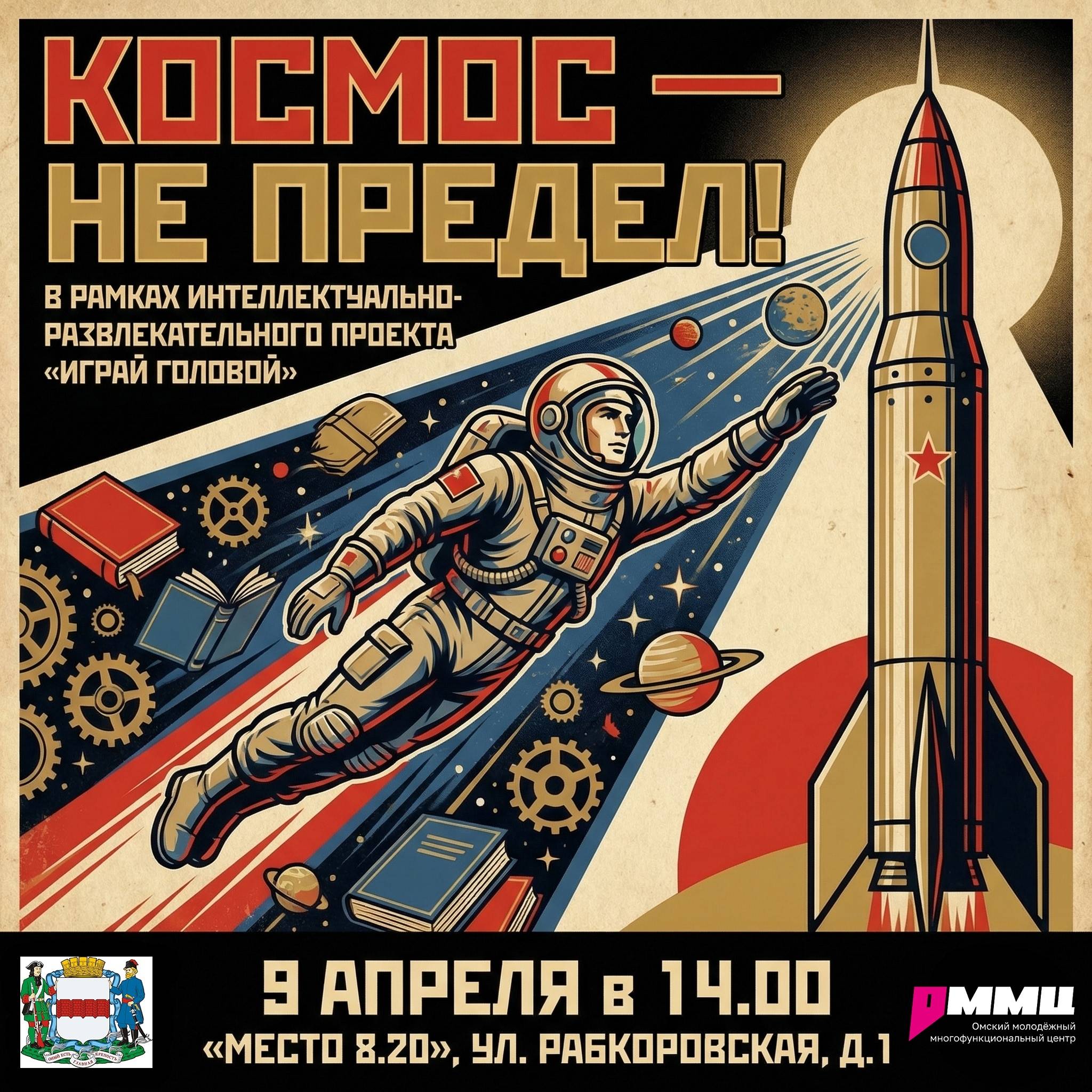 9 апреля в 14:00 на базе «Место 8.20» (ул. Рабкоровская, 1) — тематический квиз ко Дню космонавтики от проекта «Играй головой»!
