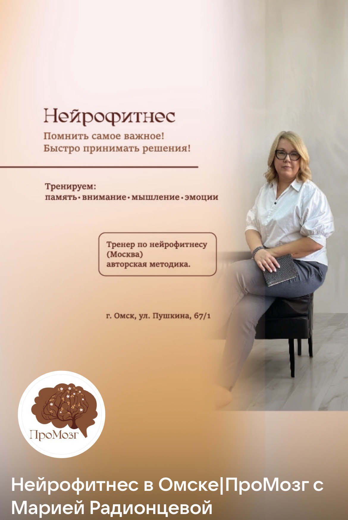 Начало: 06 марта 2026 10:00 Окончание: 06 марта 2026 11:00 Стоимость: 500.0 руб. Адрес: г Омск, ул Пушкина, д 67 к 1 Организатор: ИП Радионцева Мария Сергеевна, центр нейрофитнеса ПроМозг