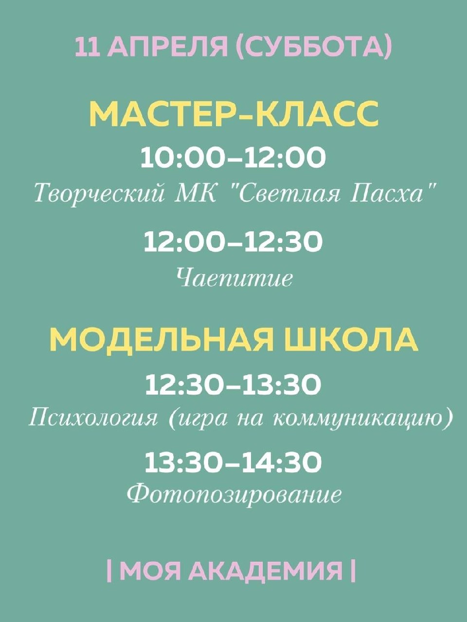 Приглашаем на творческий мастер-класс по созданию пасхальных поделок с последующим чаепитием. Для желающих доступны дополнительные занятия по психологии и фотопозированию в модельной школе. Участие в пробном занятии бесплатно.