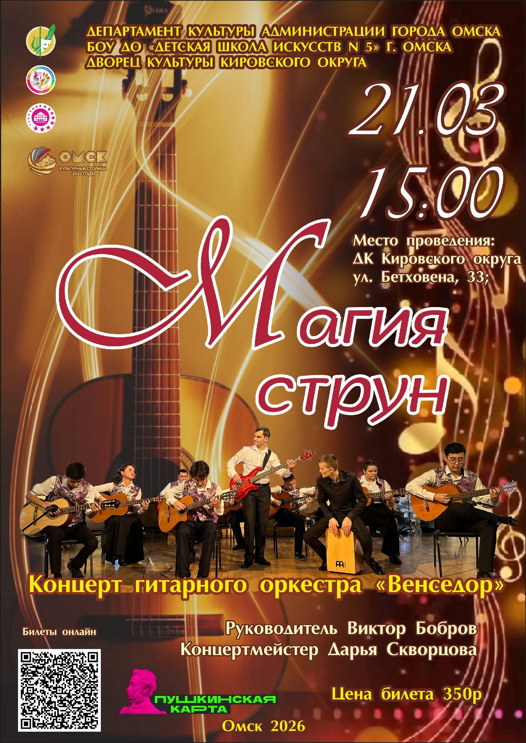 Когда: 21 марта в 15:00. Где: зал ДК Кировского округа. Название концерта: «Магия струн».