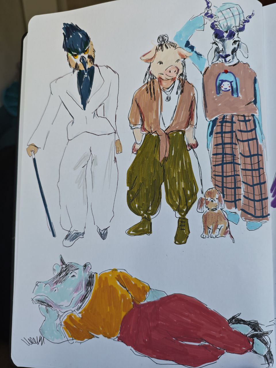 Хорошего начала недели желает Лягушка!) Пересматривала старые картинки и нашла откуда растут ноги и почему я часто рисовала лягушек с зонтиком-грибом) вот первоначальный персонаж, который когда-то родился в 2019 что ли в каком-то челлендже) Перерисовала его маркерами в скетчбук)