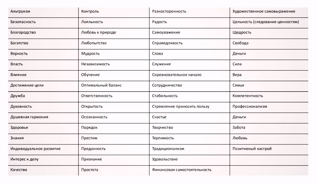 Самый простой способ начать поиск того, что вам важно, это взять готовый список ценностей, и выписать из него 10 самых вам откликающихся. ⭐️Замечайте в процессе, это действительно важно ВАМ, или навязано из вне.