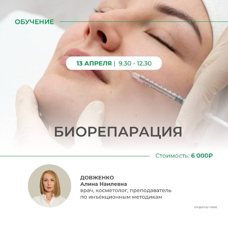 Семинар по биорепарации для косметологов с сертификатом по мезотерапии. Включает теоретическую часть по выбору препаратов и методикам, обзор препаратов, практическую отработку на моделях.