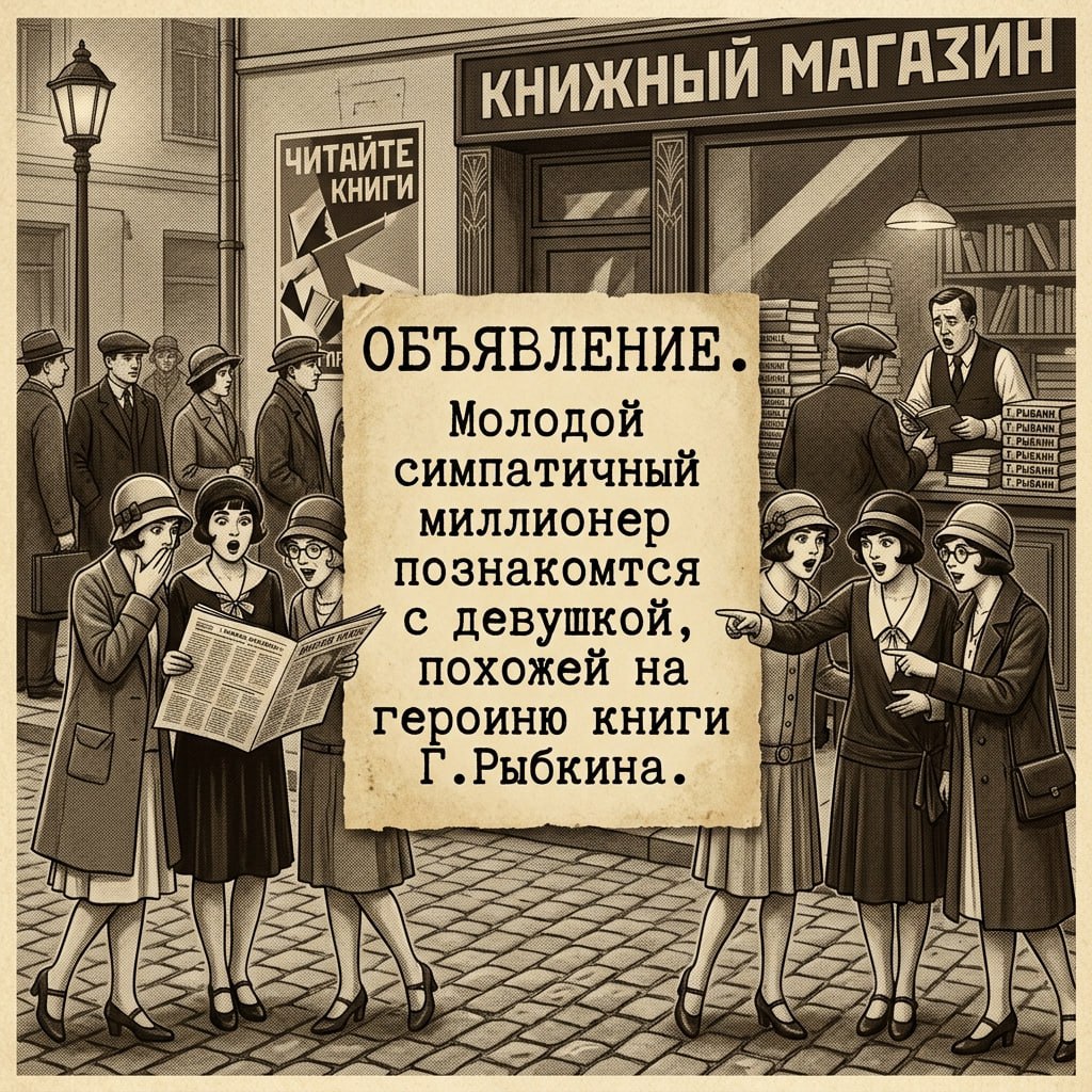 «Молодой симпатичный миллионер ищет девушку, похожую на героиню книги Г. Рыбкина»