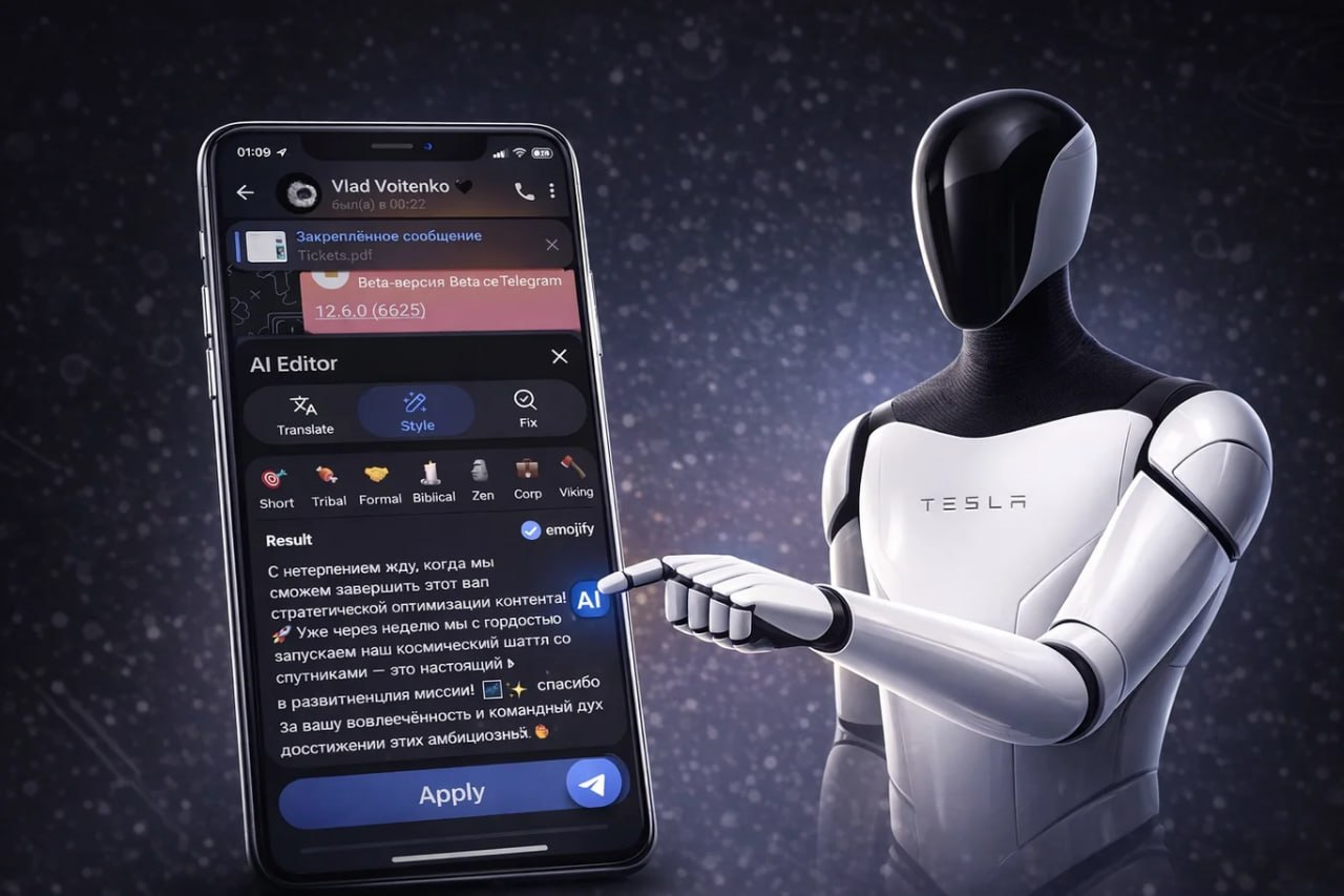 Telegram выпустил бета-версию 12.6 для Android со встроенным ИИ-редактором текста. Автоматический формат позволяет менять написанное.