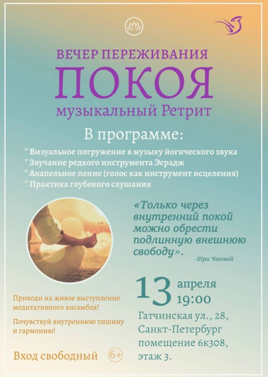 Приглашаем вас на уникальный проект «Вечер переживания покоя».